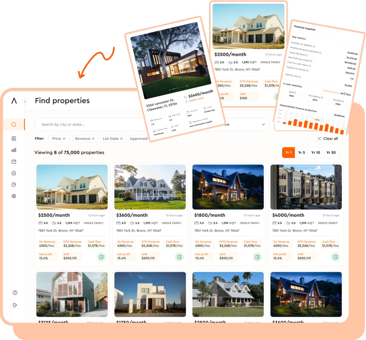 Our listing engine automatically evaluates thousands of rentals to find the best short term rental investment opportunities.